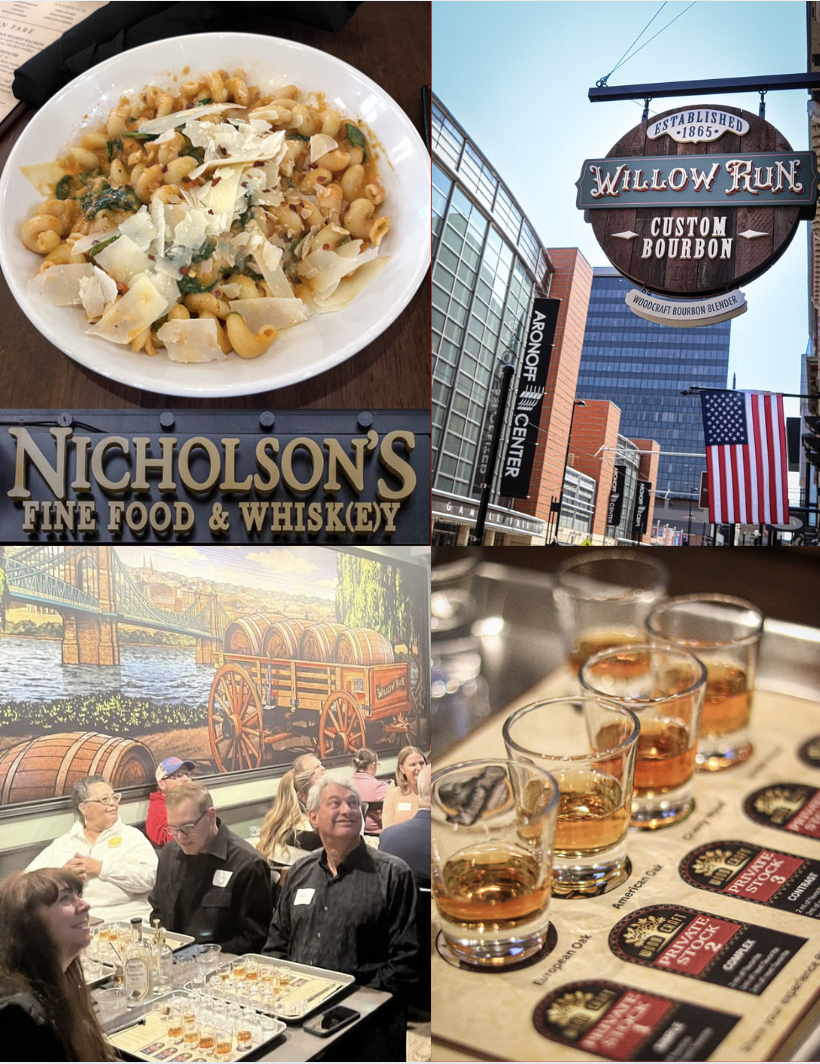 The evening starts at 6 PM with your choice of a cocktail from the bar and dinner provided by Nicholson’s. Their Pasta Alla Whiskey (vegetarian, but chicken available on the side) is phenomenal (sorry, no substitutions/additions/subtractions). The blending experience will start between 6:45 and 7 PM. You’ll also receive a bonus mini-flight of our Aglamesis chocolate sample for dessert (goes great with bourbon!).